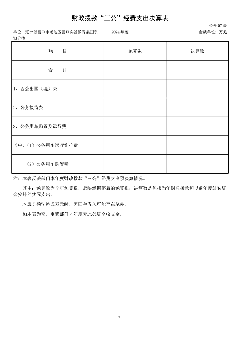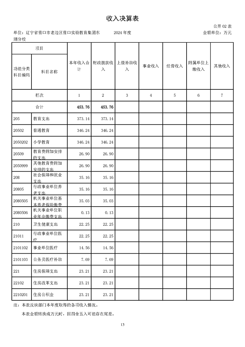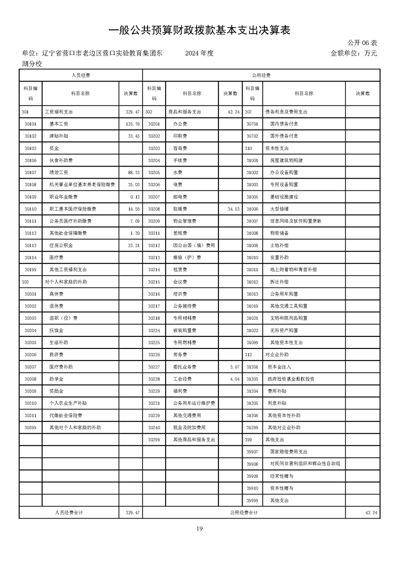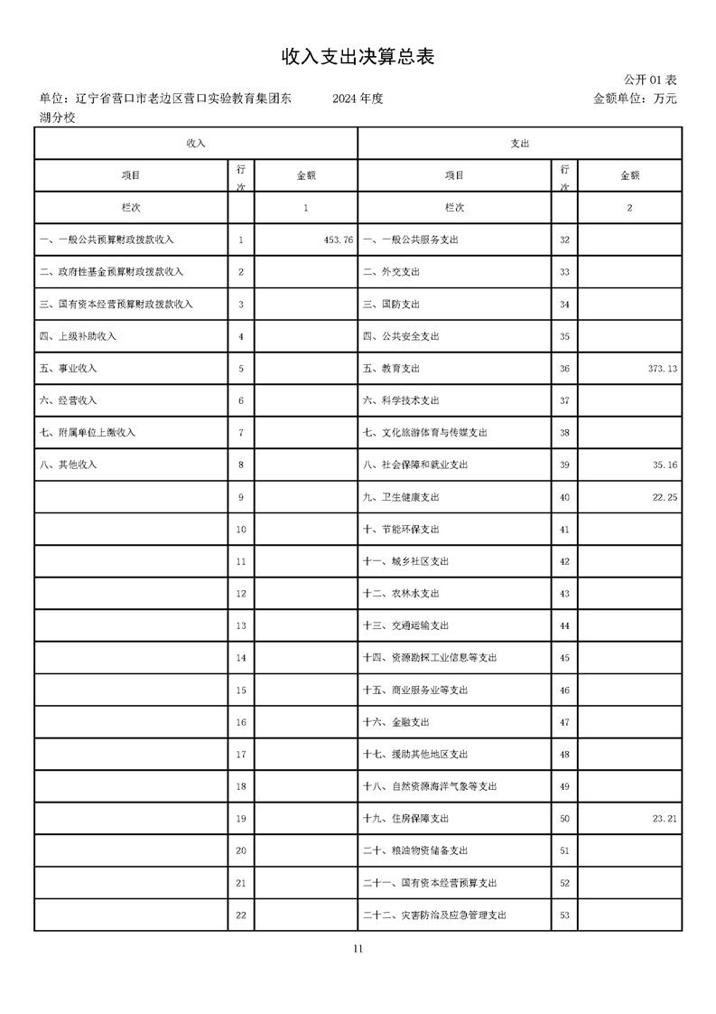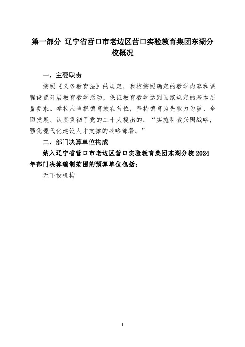 辽宁省营口市老边区营口实验教育集团东湖分校2024年度部门决算公开