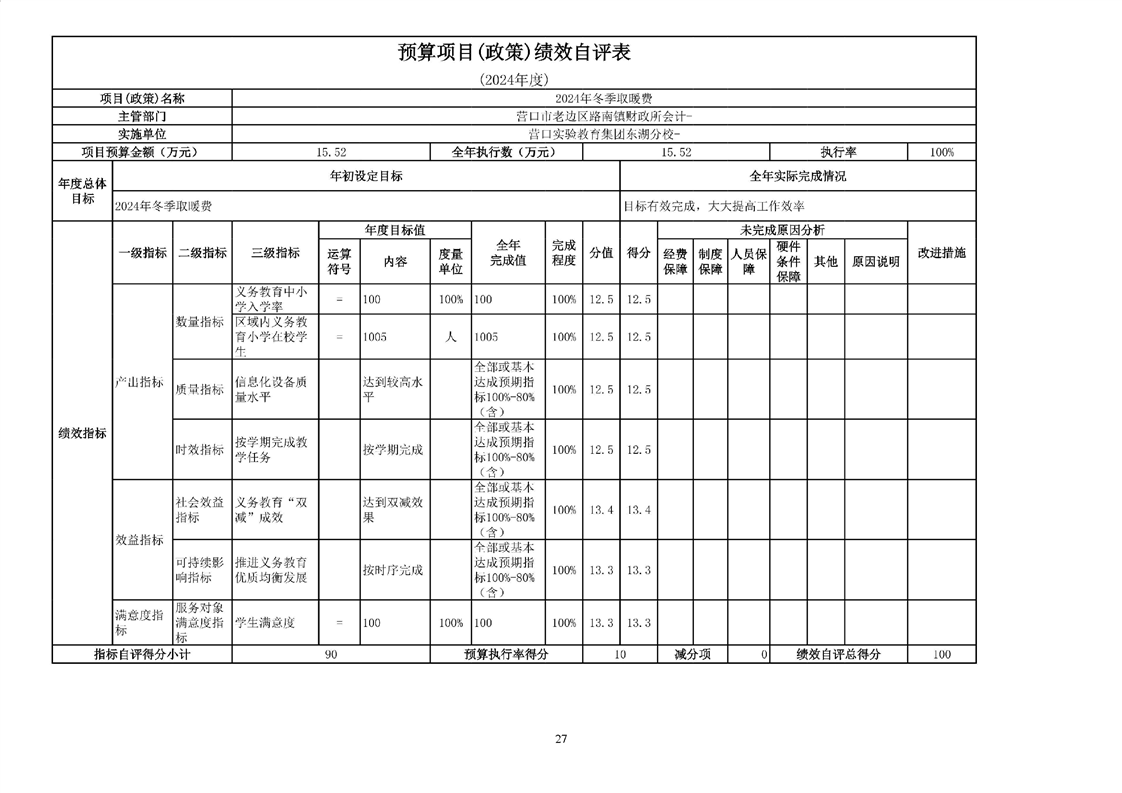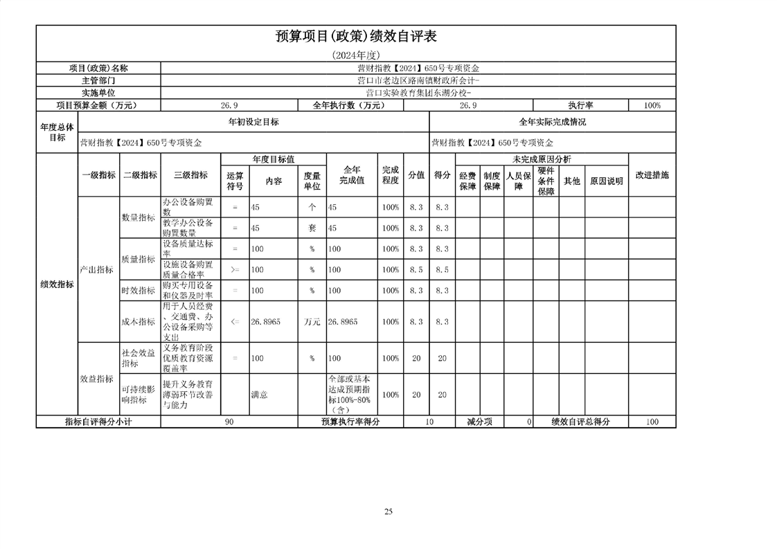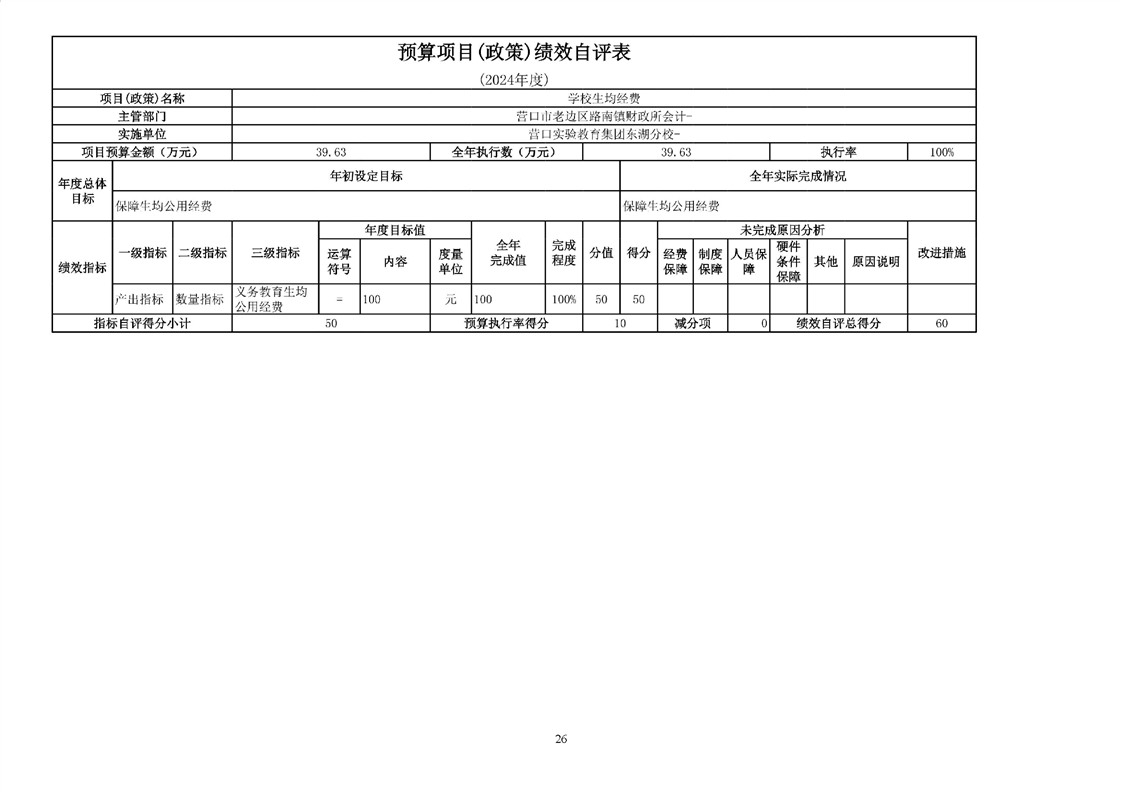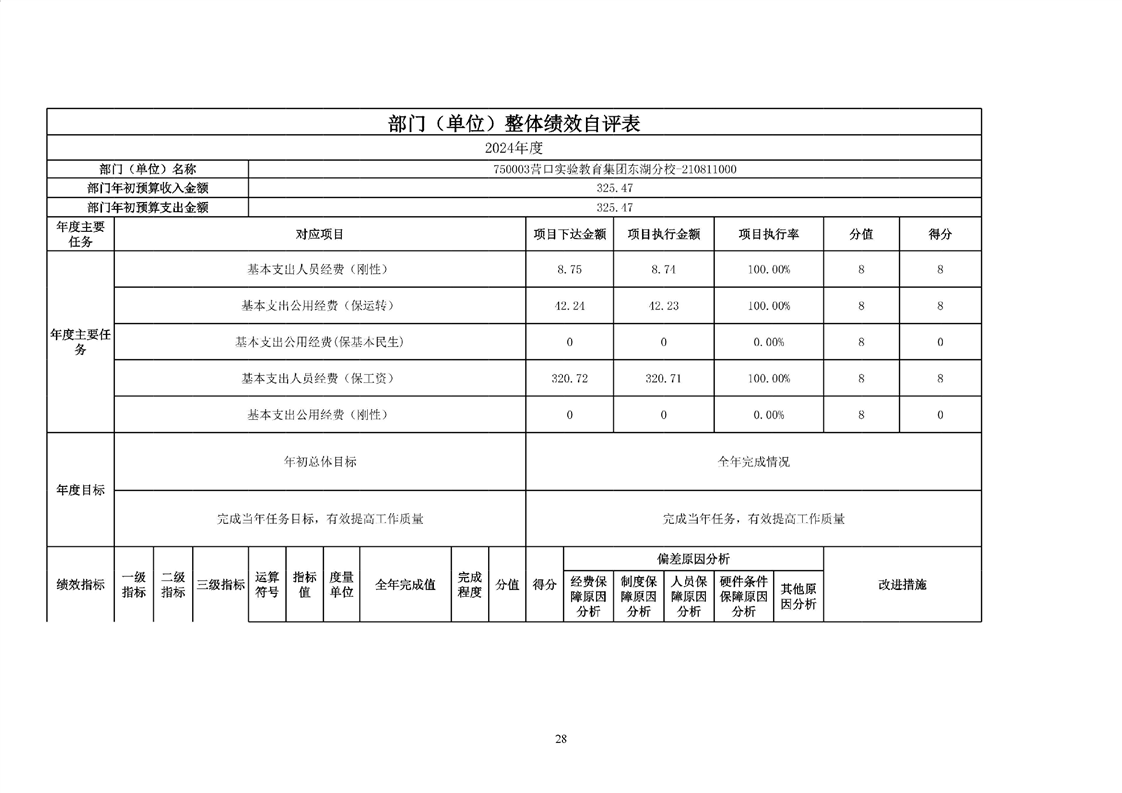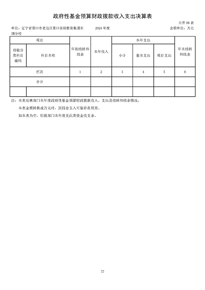 辽宁省营口市老边区营口实验教育集团东湖分校2024年度部门决算公开